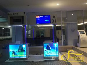The Infinity Grand Co., Ltd. had the opportunity to produce check-in counters for Krabi Airport. The image shows a demo of the check-in counter before