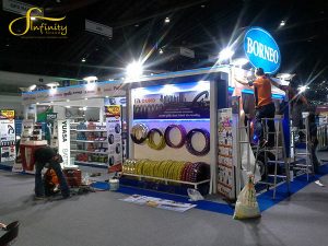 Design and production of display shelves and layout, along with installation, at the Borneo Booth in the Motor Expo 2014. – 10 Dec. 2014