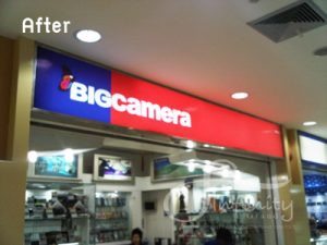 Bigcamera 1st floor storefront light box at Lotus Rama 2 and 3-sided light box for 20 storefront displays.