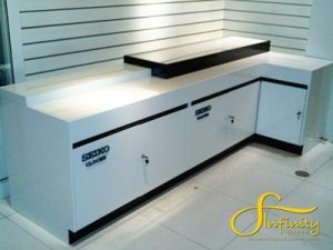 Produce display cabinets for SEIKO brand watches, which can be used as displays with built-in lighting and inkjet printing.
