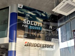 Production and installation work for Bridgestone. For this project, we handled the design, production, and installation. Complete, all-in-one service at The Infinity Grand. At The