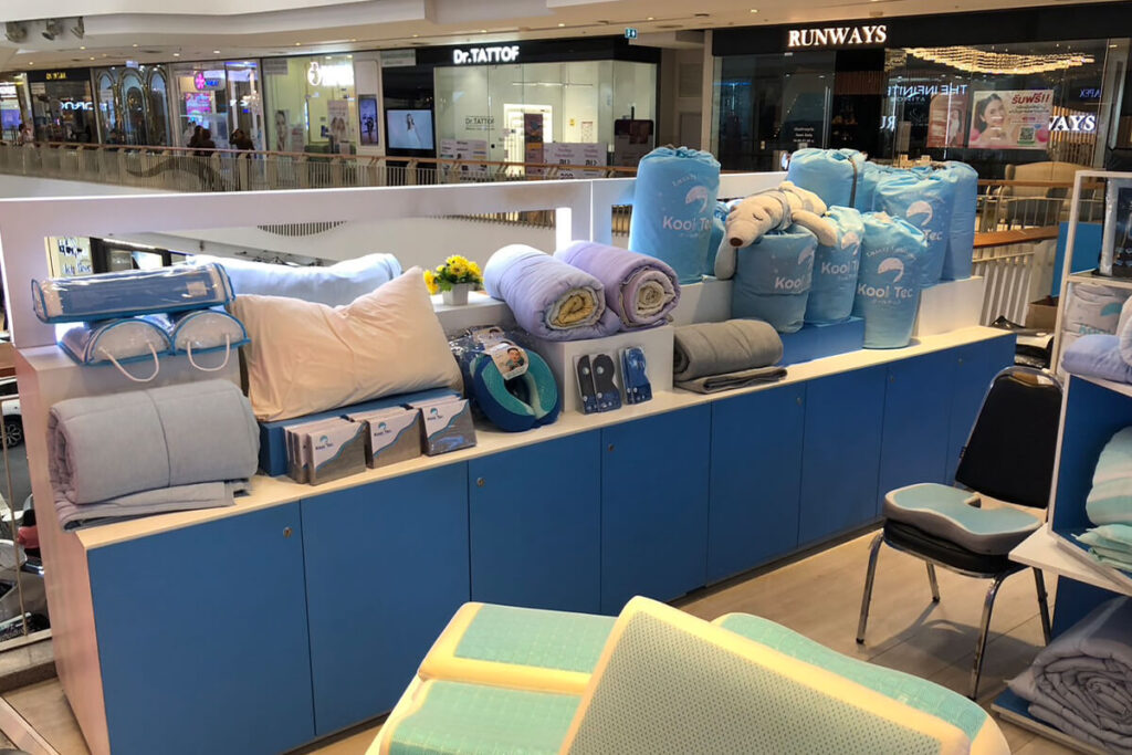 ทางเราได้รับมอบหมายจากลูกค้าให้ดูแลปรับปรุงร้านจำหน่ายชุดเครื่องนอน เริ่มต้นเราได้ทำการออกแบบโดยสร้างภาพ 3D เพื่อให้ทางลูกค้าได้เห็นภาพเสมือนจริงก่อนดำเนินการ โดยคำนึงถึงความสวยงามพร้อมด้วยประโยชน์ใช้สอย และเว้นระยะให้ลูกค้าได้สามารถเดินชมสินค้าได้ทั่วบริเวณของร้าน
